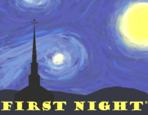 “I was inspired by Vincent van Gogh with his famous ‘Starry Night’ painting,” said Kennedy, who attended the unveiling with his parents and sister. Kennedy won the first prize of $300 for his logo design, which will appear on all First Night admission buttons and merchandise.